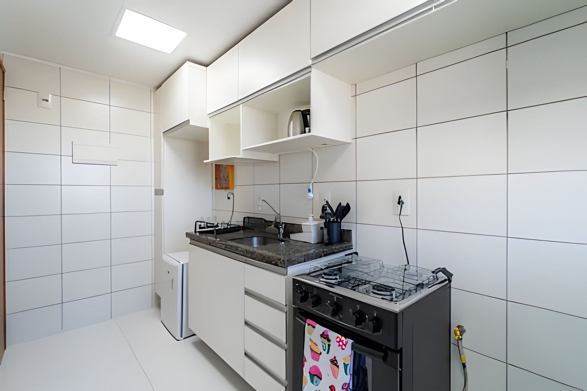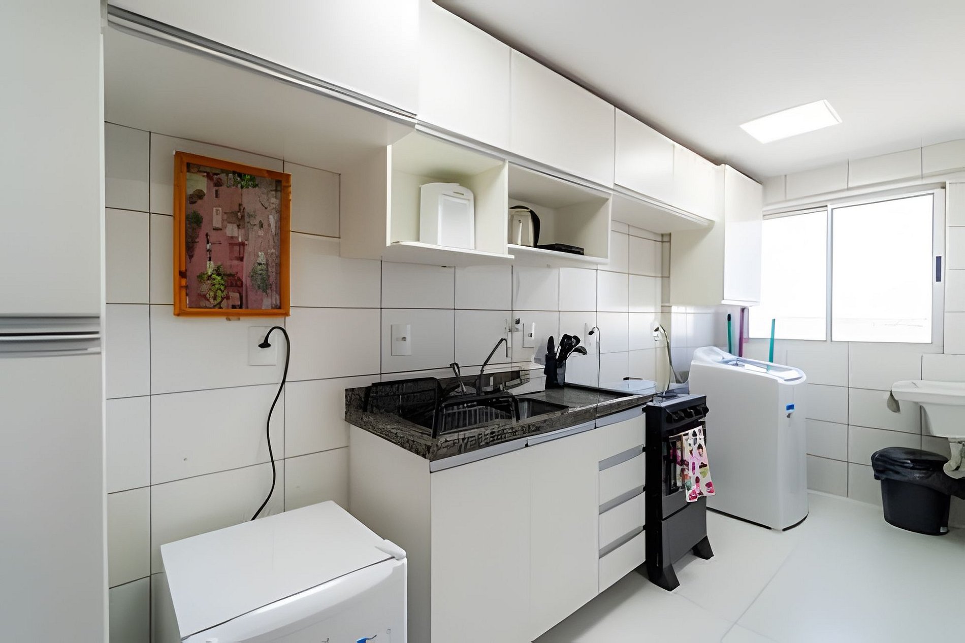 -2 bedroom apartment with suite, full kitchen, laundry area with washing machine, living room and balcony -Parking, Elevator, Games Room -Air Conditioning in 2 Bedrooms and the Living Room -Up to 5 Guests -Next to Atacadão Dia Dia, facing the restaurant and close to shops and gas stations -200 meters from BR 060 and 2km from Samambaia Metro Station