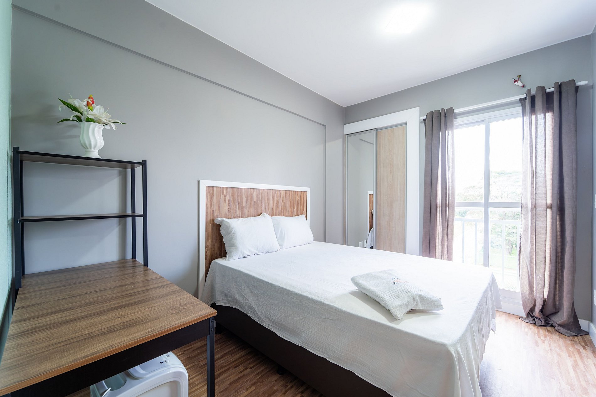 -1 Quarto (cama de casal e colchão de solteiro para a terceira pessoa) , Sala , Cozinha, Banheiro, Garagem Até 3 hóspedes -Ao Lado da Universidade Catolica de frente para o Pistão Sul - Proximo ao Taguatinga Shopping -Cozinha Completa com todos os utensílios - Mercadinho de auto atendimento no saguão do predio.