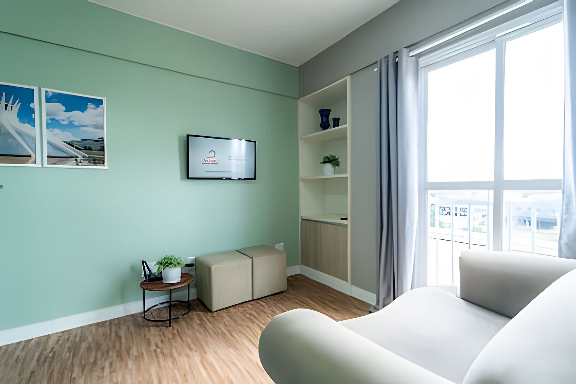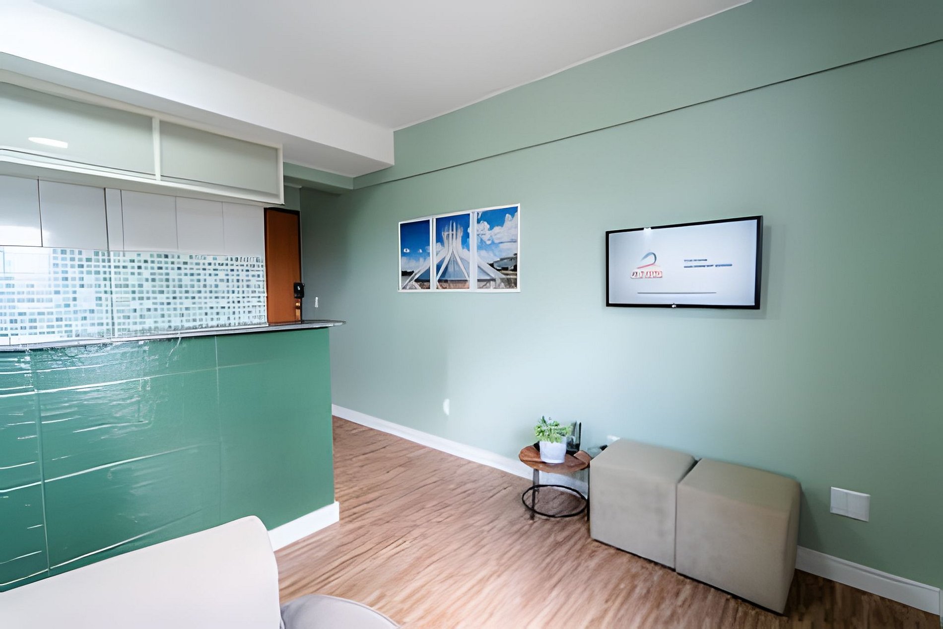 -1 Quarto (1 cama de casal + 1 cama box de solteiro e + 1 cama auxiliar de solteiro) , Sala , Cozinha, Banheiro, Garagem Até 3 hóspedes -Ao Lado da Universidade Catolica de frente para o Pistão Sul - Proximo ao Taguatinga Shopping -Cozinha Completa com todos os utensílios - Mercadinho de auto atendimento no saguão do predio.