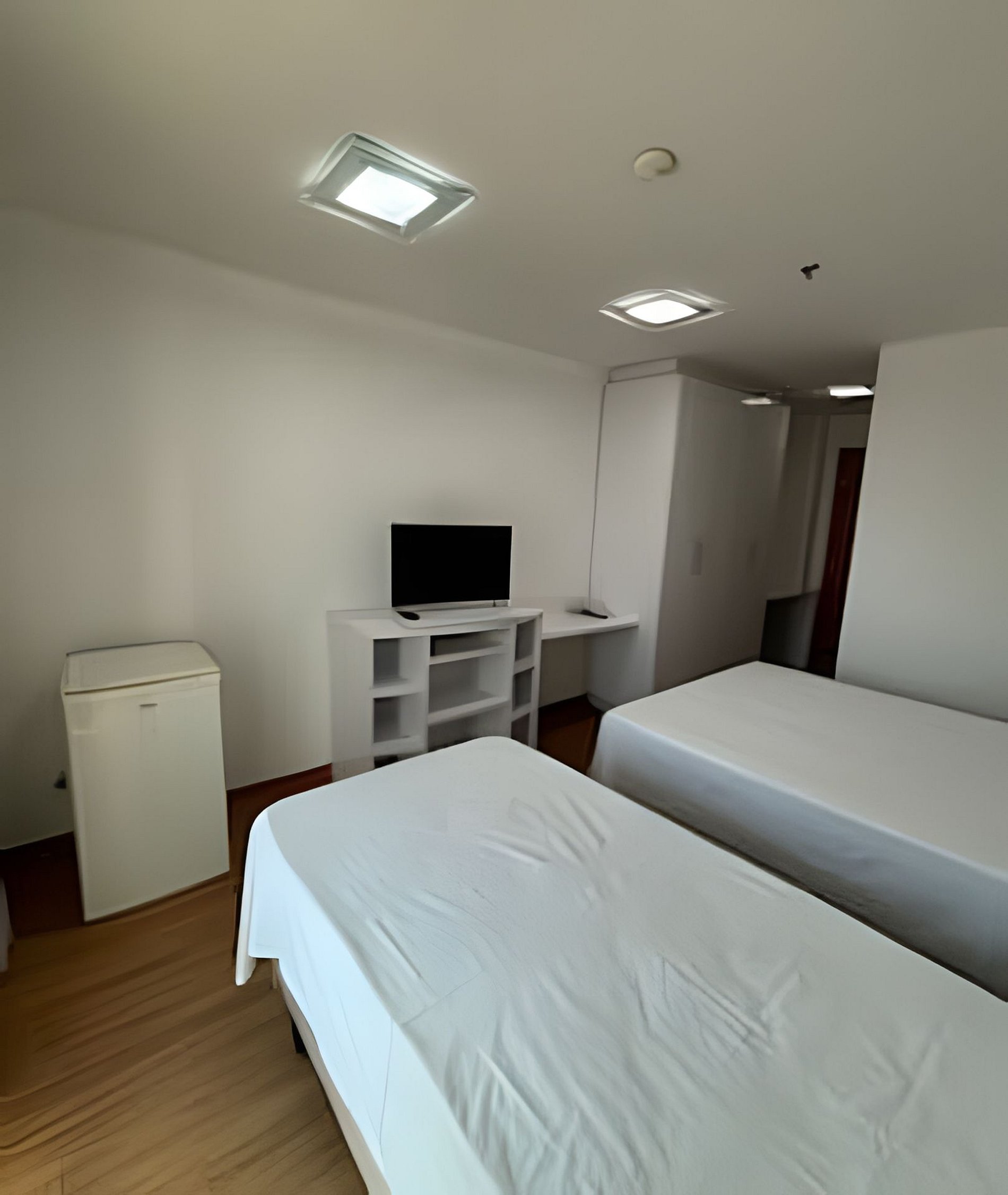 Configuração do quarto 1 cama de casal Box (1,38x1,98) 1 cama de solteiro box(88x1,98) 1 cama auxiliar (88x1,98)