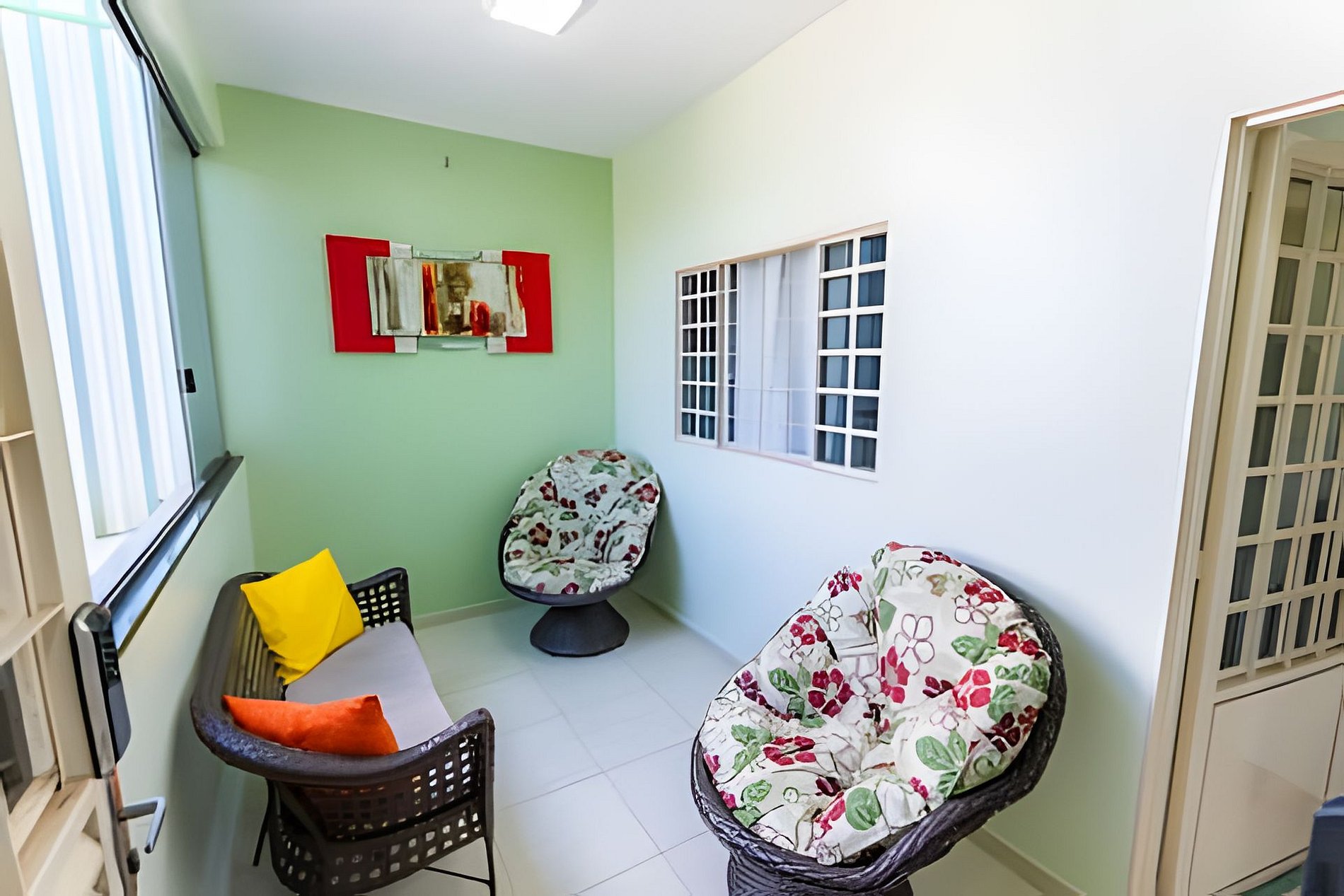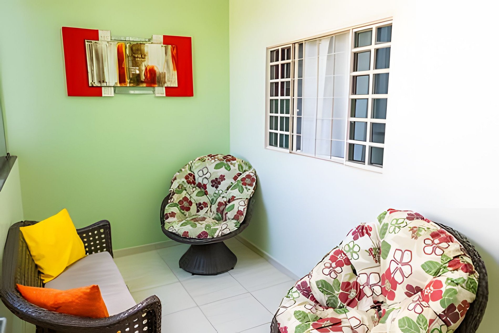 Área de estar com sofá/cadeira