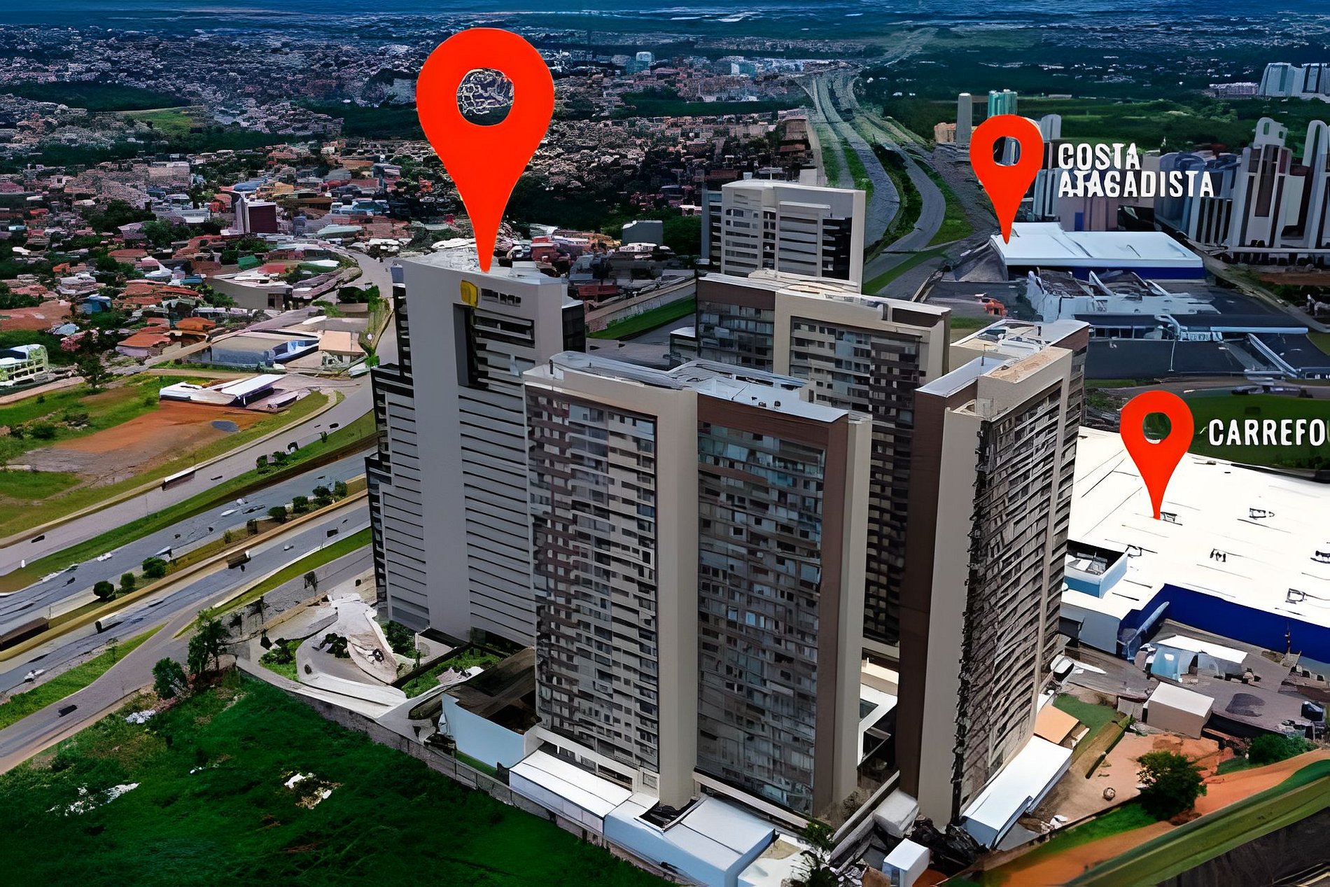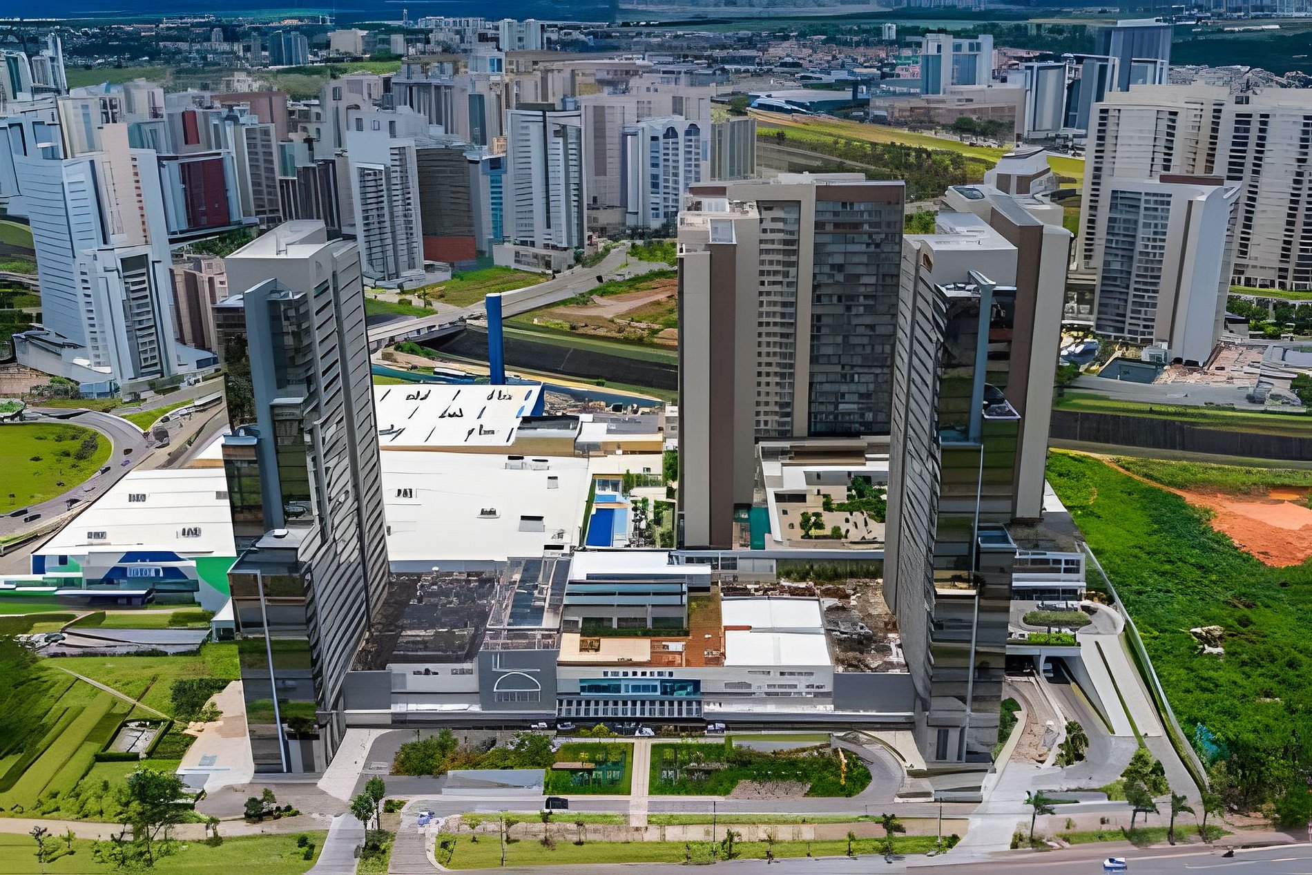 Condominio fica em um shopping de Aguas Claras , DF Plaza , com lojas, restaurantes , estacionamento, cinema e etc.